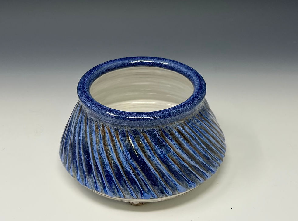 Fluted and Footed water bowl in Blue /White/Brown