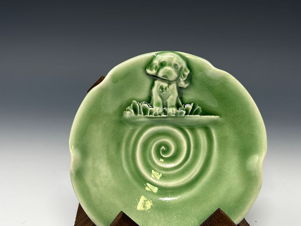 Raised foot puppy plate with scalloped edges